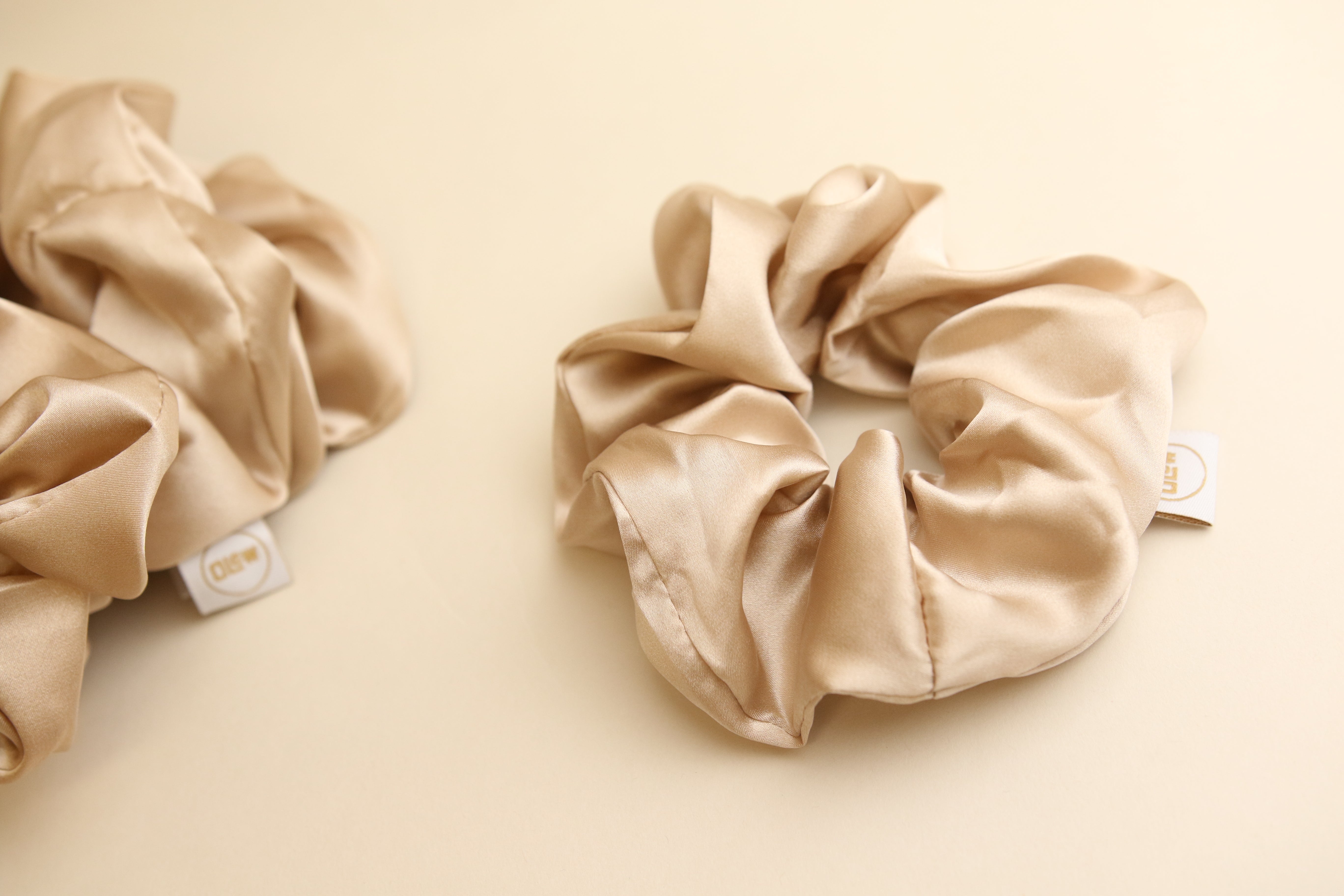 Silks naturally smooth texture allows your hair to glide with little to no friction, preventing frizz, tangles, snags and the dreaded pieces of hair being wrapped around the scrunchie!