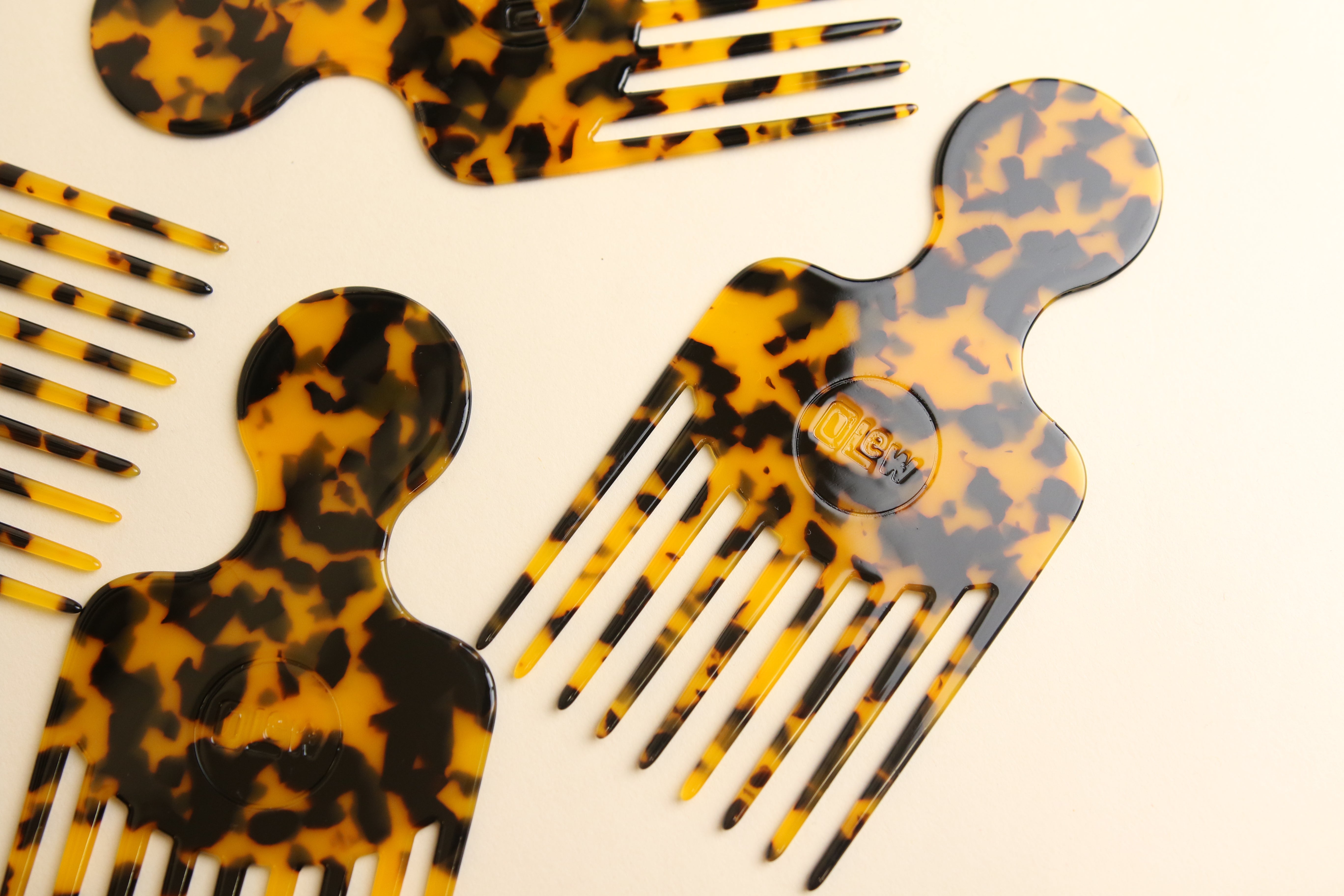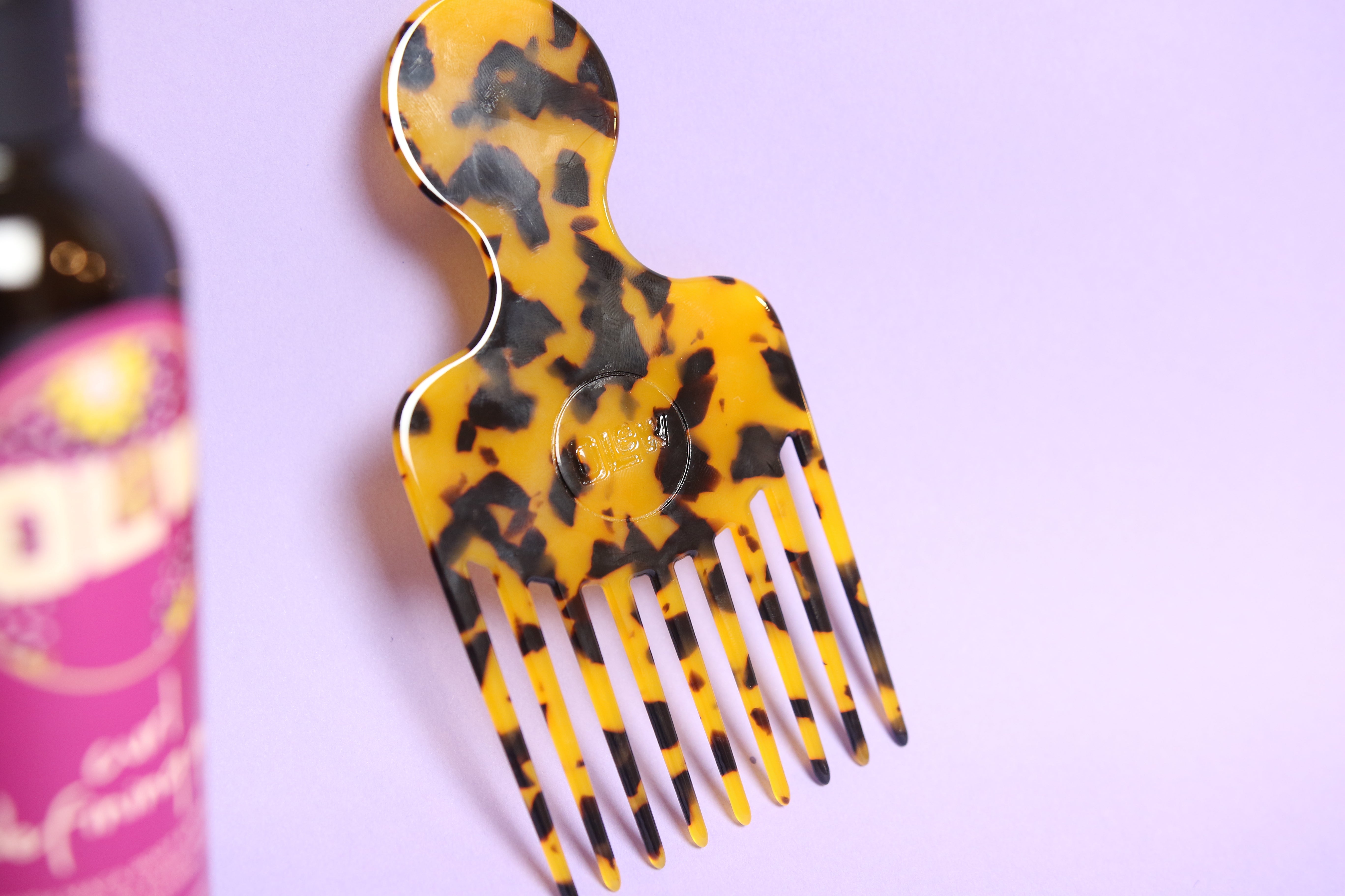 In an elegant, classic tortoise shell design with Olew embellished logo, this wide tooth comb helps gently detangle your curls and add volume to your roots!